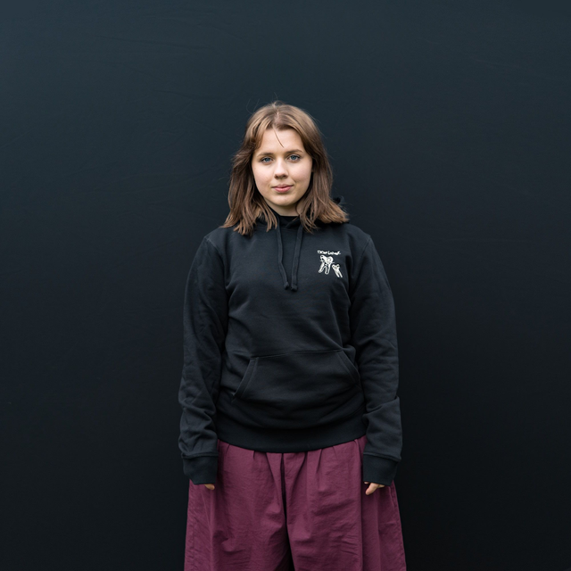 Fair produzierter Hoodie mit Frontstick und großem Backprint (Siebdruck), fällt eher schmal aus